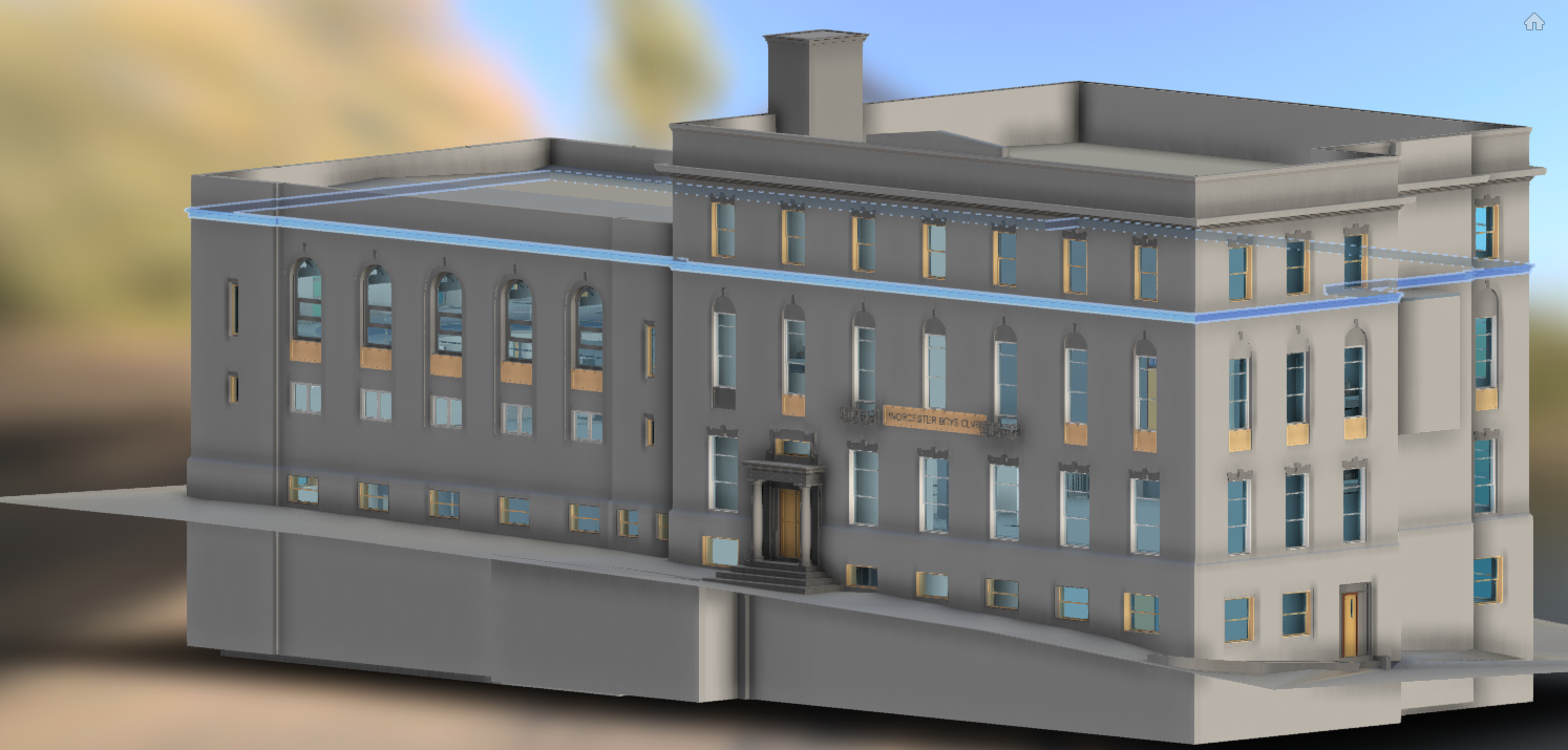Full‐scale Revit models for Cabot House (exterior + select interiors) and supplemental interior/exterior models for Holmes Hall, Bertram Hall, and Eliot Hall